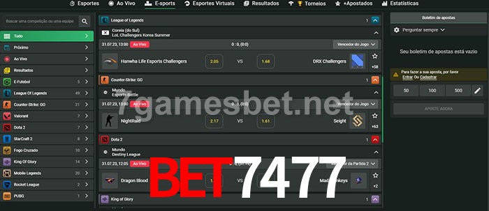 A aposta Bet7477 oferece aos jogadores a experiência mais conveniente de apostas em eSports!